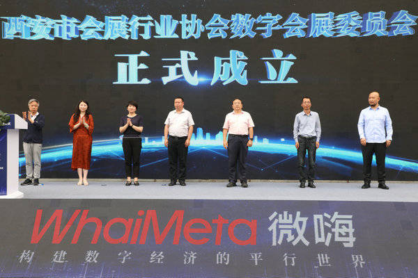 陕西省商务厅副厅长张文政;西安市商务局一级调研员安建勇;陕西省商务厅督察处处长南阳;西安市商务局会展管理处处长王志功;西安软件园发展中心副主任张露;陕西省会展行业协会会长、中共西安市会展行业协会支部书记马建明;西安市会展协会会长贾欣共同为西安市会展协会数字会展委员会的成立启幕。