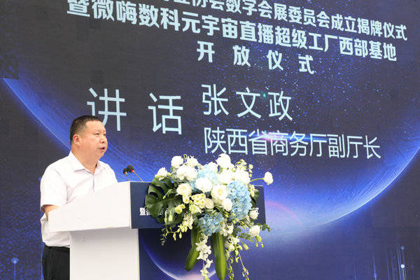 5月27日下午,西安市会展行业协会数字会展委员会成立揭牌仪式暨微嗨数科元宇宙直播超级工厂西部基地开放仪式在西安高新区举行。陕西省商务厅副厅长张文政;西安市商务局一级调研员安建勇;陕西省商务厅督察处处长南阳;西安市商务局会展管理处处长王志功;西安高新区机关党委专职副书记兼纪委书记吴峰;陕西省会展行业协会会长、中共西安市会展行业协会支部书记马建明;西安市会展协会会长贾欣;西安软件园发展中心副主任张露;西安曲江国际会展集团总经理许英姿等出席了活动。