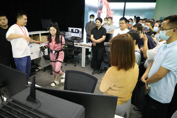 会议结束后,参会嘉宾共同参观了占地1000多平的元宇宙直播工厂,其中包括斥资数百万从好莱坞引进的数字电影级影像数字拍摄、内容生产制作、渲染合成等全栈工作流系统,拥有西部首家和唯一的全4k大型虚拟制片场、XR虚拟直播实验室、影视特技制作工作室,同时设立了继北京、深圳后第三大虚拟数字资产研发中心,拥有一支经验丰富、技术顶尖的工程师团队。直播厂区配套环境优雅,硬件设备配套齐全,可提供虚拟制片、虚拟直播、XR直播、数字人设计开发等一站式服务和解决方案。