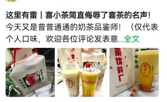 还有网友发现,喜小茶是有“奶精”的,因此吐槽:“与喜茶毫无关系,却偏要蹭喜茶的热度。”
