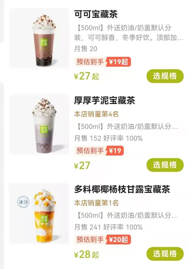 但随着奶茶行业的发展,同质化越来越严重,同样有鲜果、芝士奶盖的奶茶品牌,如奈雪的茶,在网上点餐,最贵的芝士奶盖茶都在20元以内。